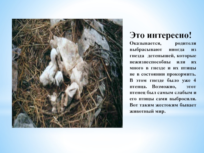 Оказывается, родители выбрасывают иногда из гнезда детенышей, которые нежизнеспособны или