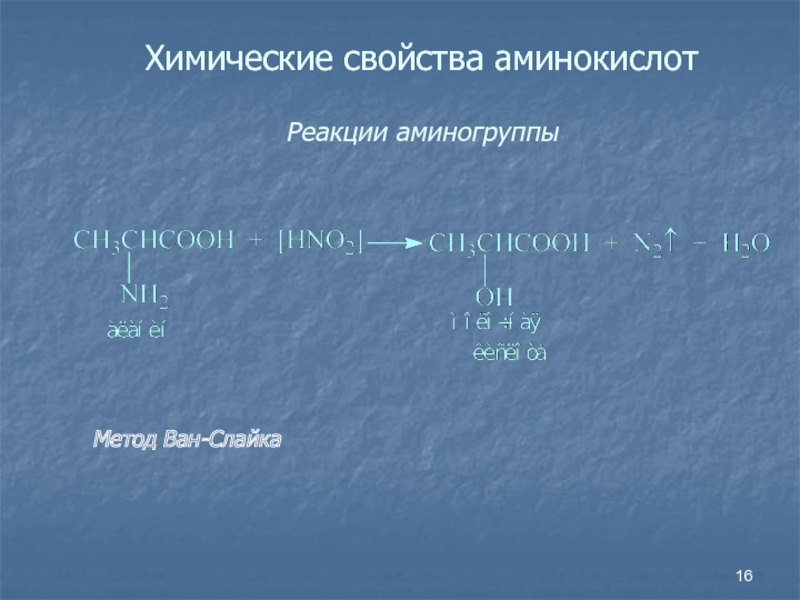 Слайд 16Химические свойства аминокислот Реакции аминогруппы
