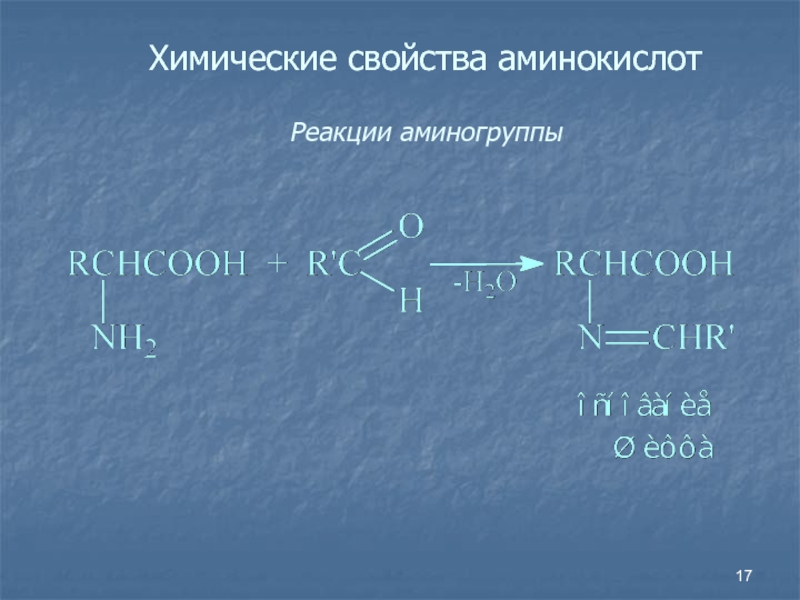 Слайд 17Химические свойства аминокислот Реакции аминогруппы