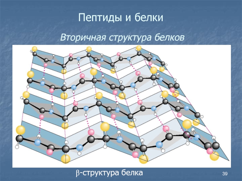 Слайд 39Пептиды и белки Вторичная структура белков