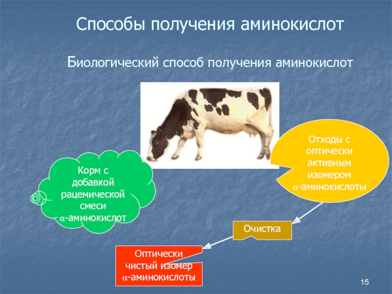Слайд 15Способы получения аминокислот Биологический способ получения аминокислот