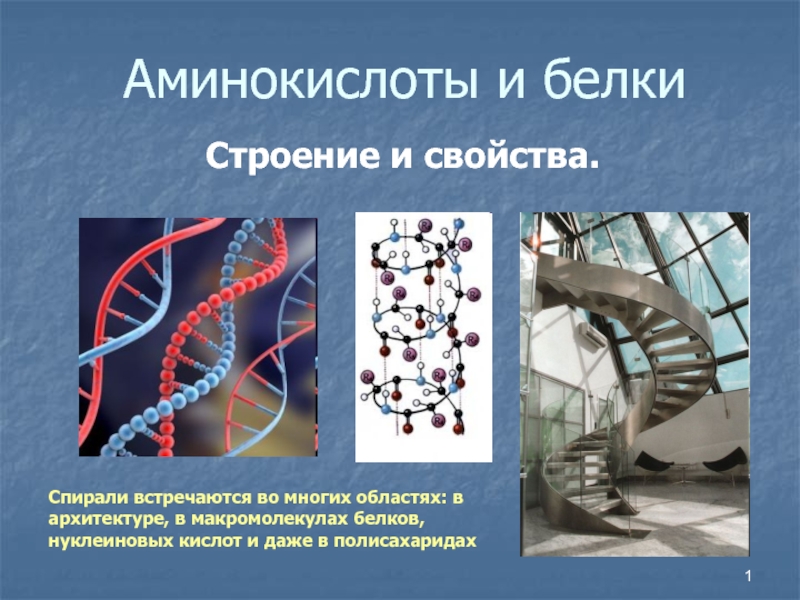 Аминокислоты и белкиСтроение и свойства.Спирали встречаются во многих областях: в архитектуре, в макромолекулах белков, нуклеиновых кислот и