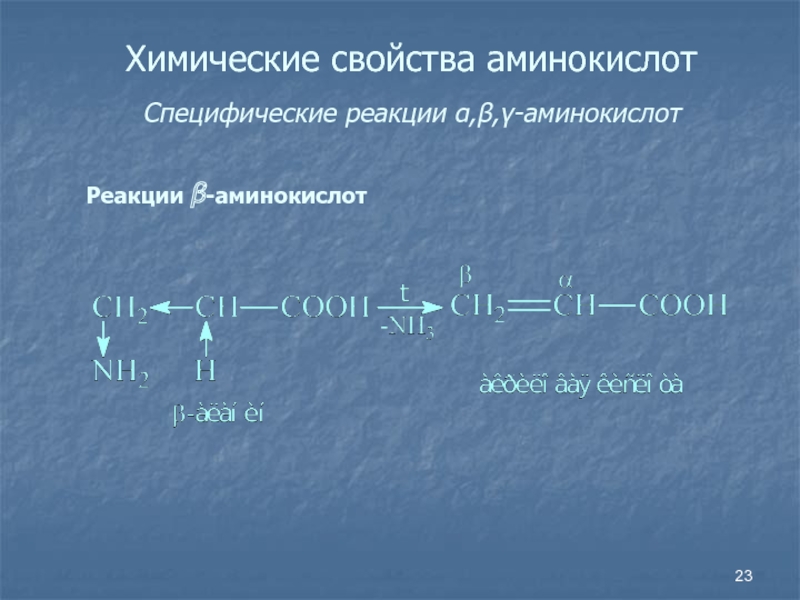 Слайд 23Химические свойства аминокислот Специфические реакции ,,-аминокислот
