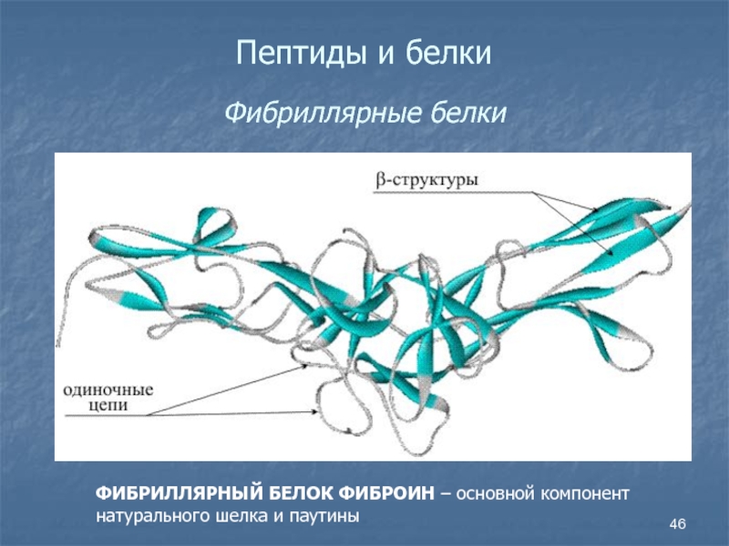 Слайд 46Пептиды и белки Фибриллярные белки