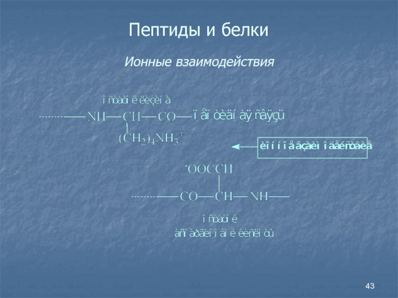 Слайд 43Пептиды и белки Ионные взаимодействия