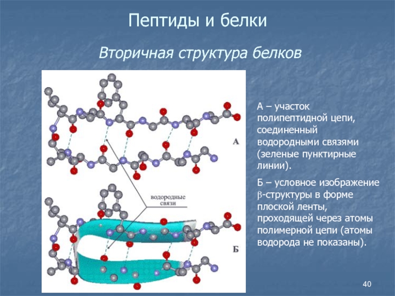 Слайд 40Пептиды и белки Вторичная структура белков