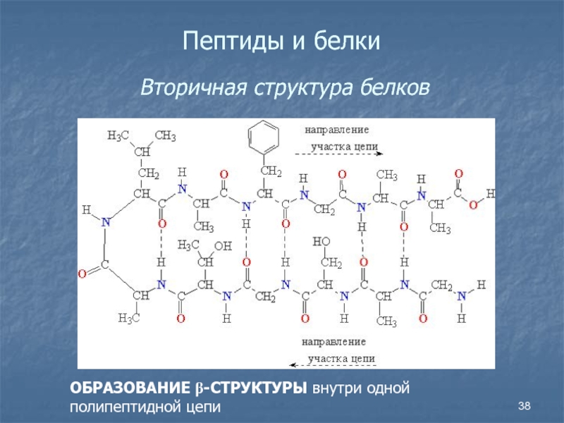 Слайд 38Пептиды и белки Вторичная структура белков