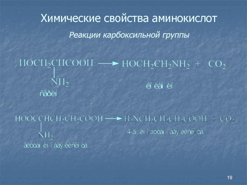 Слайд 19Химические свойства аминокислот Реакции карбоксильной группы