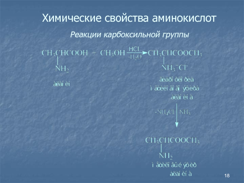 Слайд 18Химические свойства аминокислот Реакции карбоксильной группы