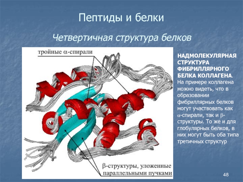 Слайд 48Пептиды и белки Четвертичная структура белков