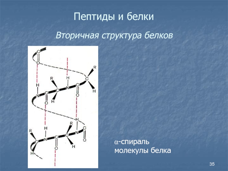 Слайд 35Пептиды и белки Вторичная структура белков