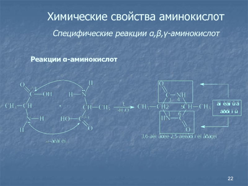 Слайд 22Химические свойства аминокислот Специфические реакции ,,-аминокислот