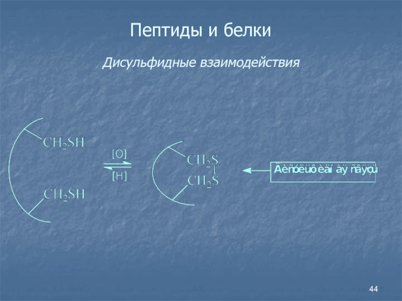 Слайд 44Пептиды и белки Дисульфидные взаимодействия
