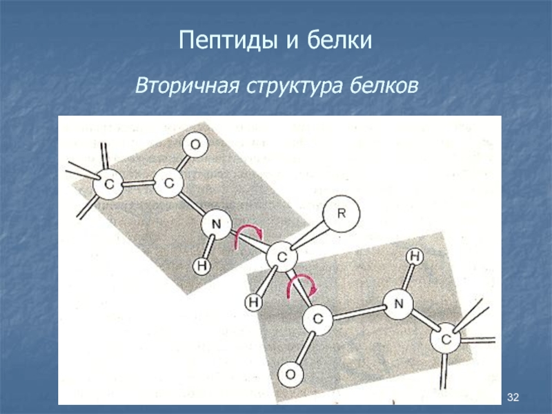 Слайд 32Пептиды и белки Вторичная структура белков