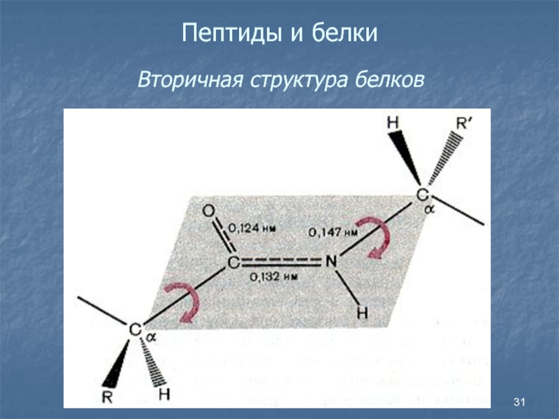 Слайд 31Пептиды и белки Вторичная структура белков