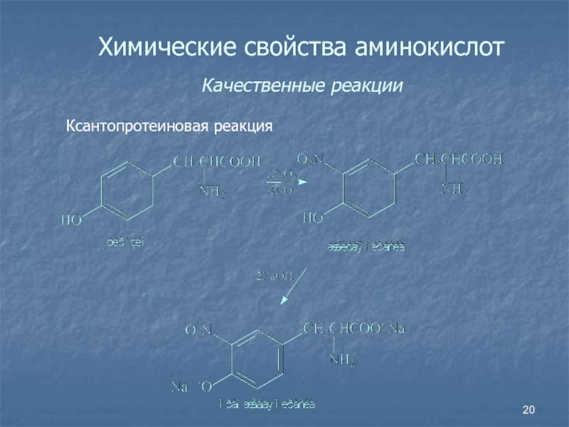 Слайд 20Химические свойства аминокислот Качественные реакции