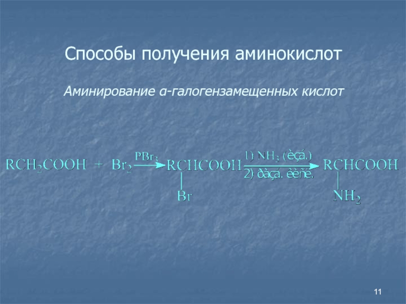 Слайд 11Способы получения аминокислот Аминирование -галогензамещенных кислот