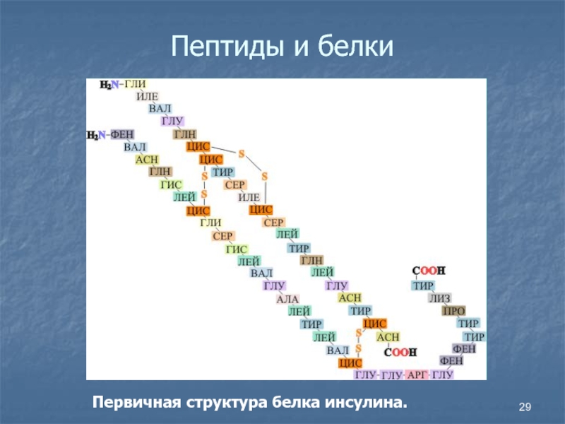 Пептиды и белки Первичная структура белка инсулина.