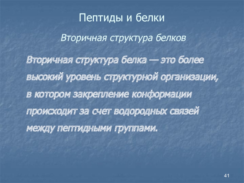 Слайд 41Пептиды и белки Вторичная структура белков