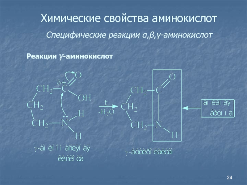 Слайд 24Химические свойства аминокислот Специфические реакции ,,-аминокислот