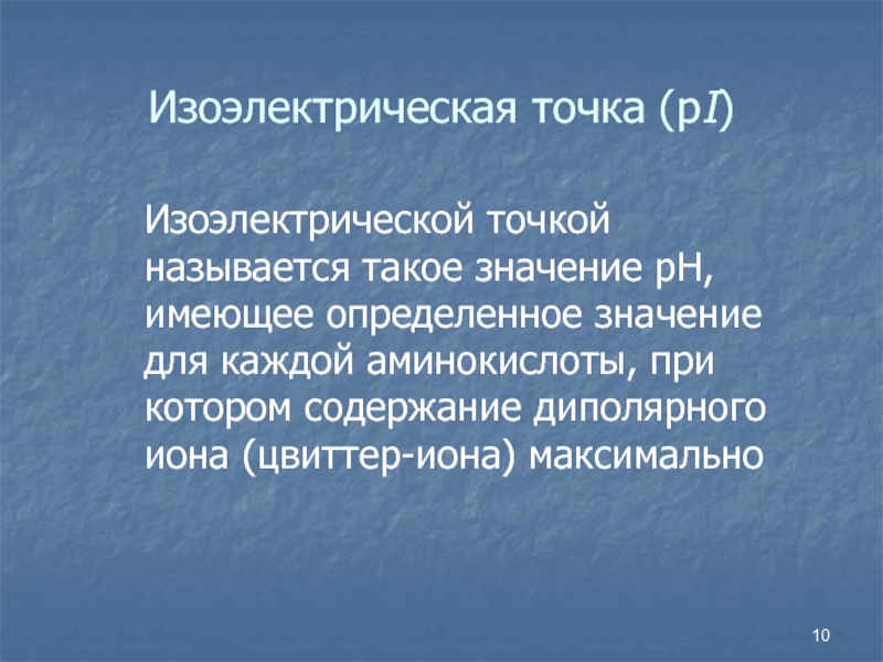 Слайд 10Изоэлектрическая точка (рI)