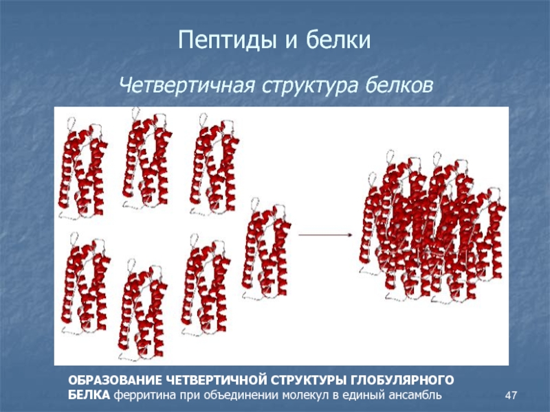 Слайд 47Пептиды и белки Четвертичная структура белков