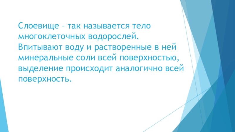 Слайд 4Слоевище – так называется тело многоклеточных водорослей. Впитывают воду и растворенные