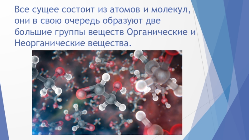 Все сущее состоит из атомов и молекул, они в свою очередь образуют две большие группы веществ Органические