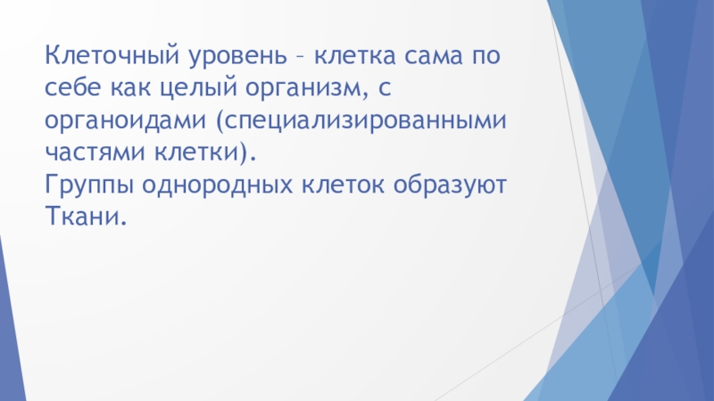 Слайд 32Клеточный уровень – клетка сама по себе как целый организм, с