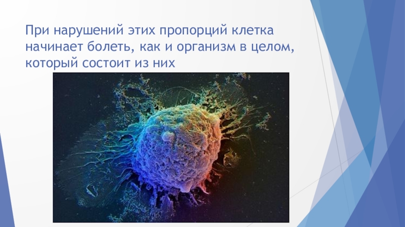 Слайд 20При нарушений этих пропорций клетка начинает болеть, как и организм в