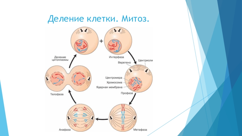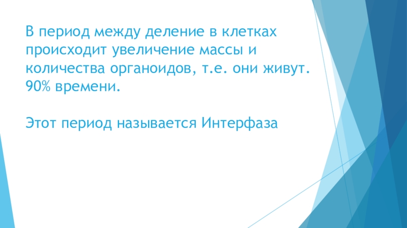 Слайд 10В период между деление в клетках происходит увеличение массы и количества