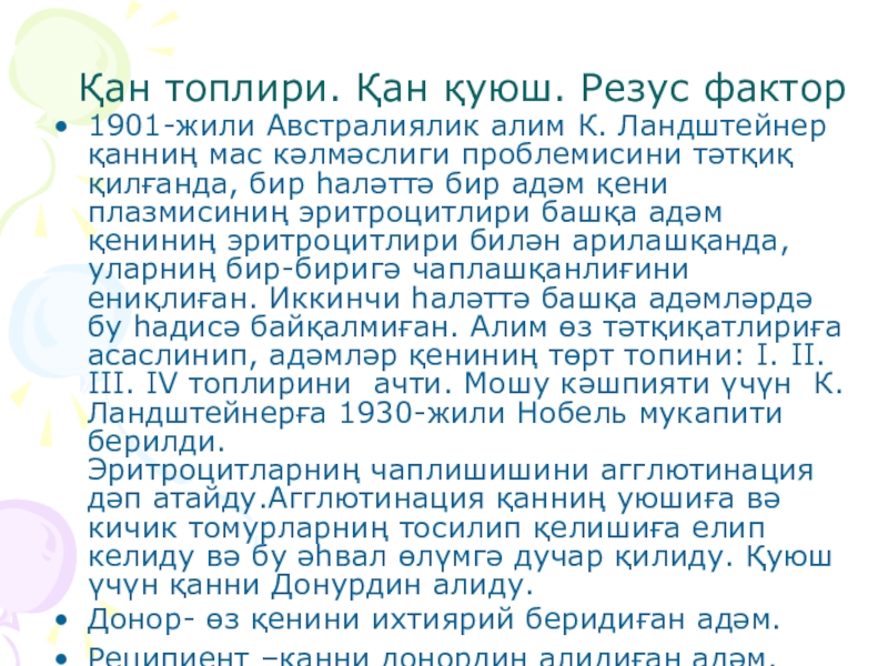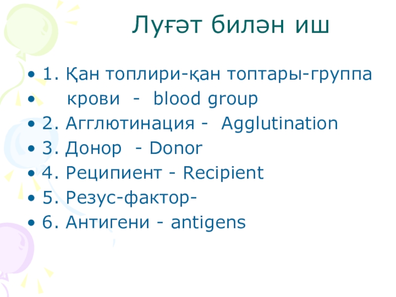 1. «Қан топтары және қан құю» тақырыбын оқу