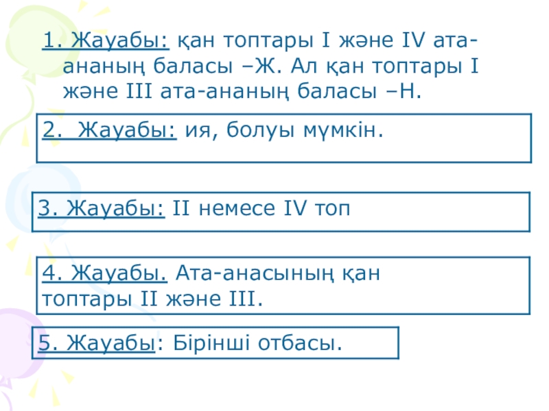 2. Өз ата-аналарының қан топтарына байланысты мүмкін болатын жағдайдағы қан топтарына есептер шығару