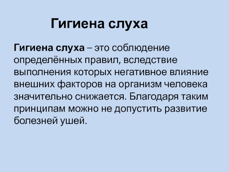 Гигиена слуха – это соблюдение определённых правил, вследствие выполнения которых
