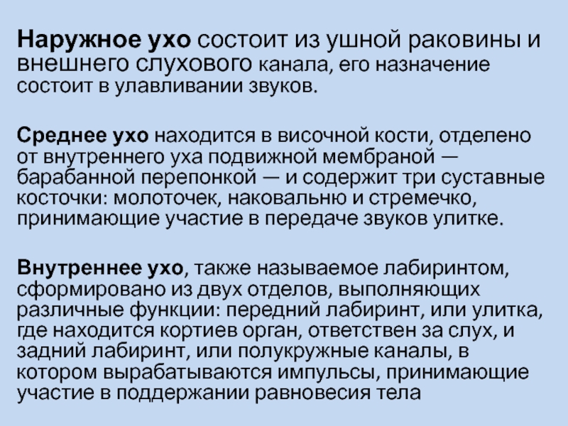 Слуховой анализатор — совокупность механических, рецепторных и нервных структур, деятельность