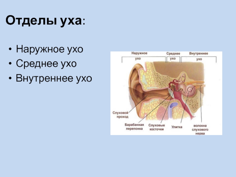 Внешний слуховой проход - улавливает звуковые волны, приходящие извне, и направляет их к среднему уху.