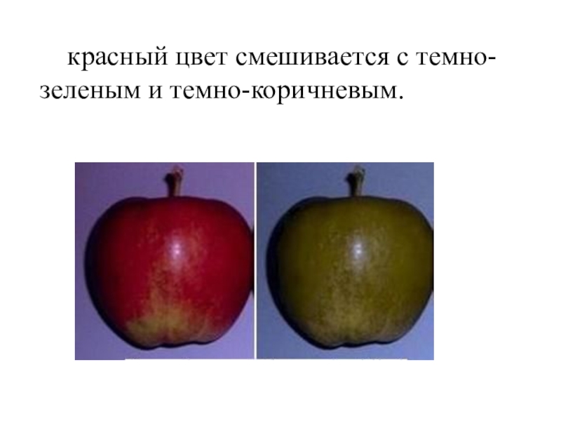 Слайд 6красный цвет смешивается с темно-зеленым и темно-коричневым.