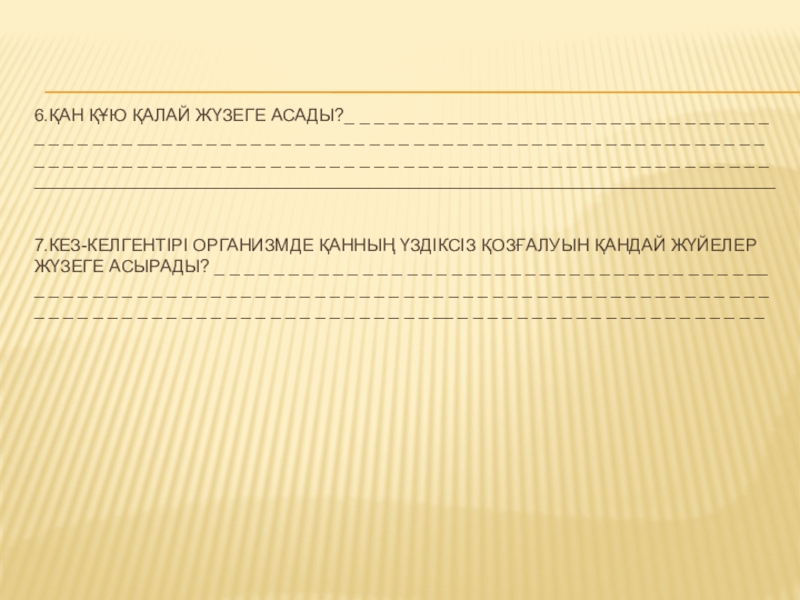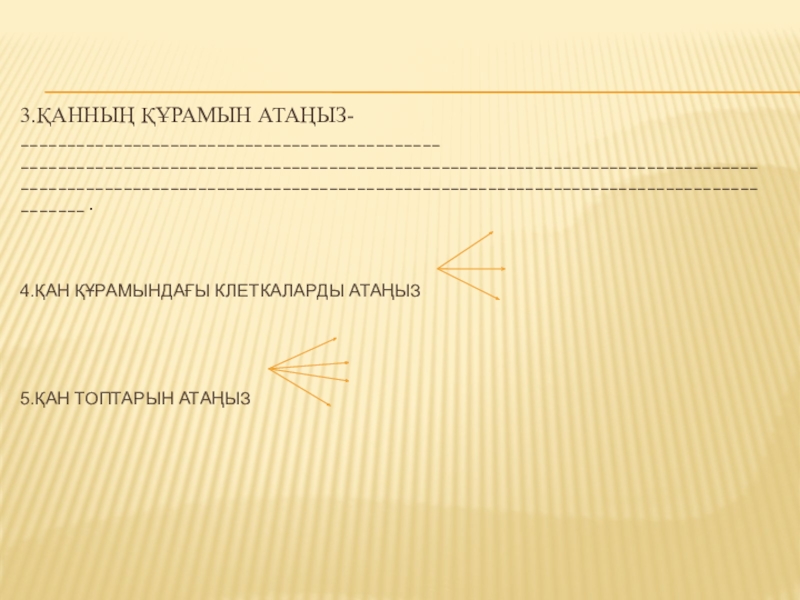 Слайд 53.Қанның құрамын атаңыз- _____________________________________________ _____________________________________________________________________________________________________________________________________________________________________ . 4.Қан құрамындағы клеткаларды атаңыз 5.Қан топтарын атаңыз