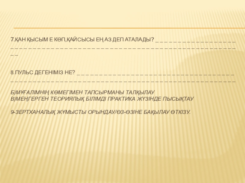 _ _ _ _ _ _ _ _ _ _ _ _ _ _ _ _ _ _ _ _ _ _ _ _ _ _ _ _ _ _ _ _ _ _ _ _ _ _ _ _ _ _ _ _ _ _ _ _ _ _ _ _ _ _ _ _ _ _ _ _ _ _ _ _ _ _ _ 8.Пульс дегеніміз не? _ _ _ _ _ _ _ _ _ _ _ _ _ _ _ _ _ _ _ _ _ _ _ _ _ _ _ _ _ _ _ _ _ _ _ _ _ _ _ _ _ _ _ _ _ _ _ _ _ _ _ _ _ _ _ _ _ _ _ _ _ _ _ _ _ _ _ _ _ _ _ _ _ _ _ _ _ _ _ _ _ _ _ _ _ б)Мұғалімнің көмегімен тапсырманы талқылау в)Меңгерген теориялық білімді практика жүзінде пысықтау 9-зертханалық жұмысты орындау/өз-өзіне бақылау өткізу.