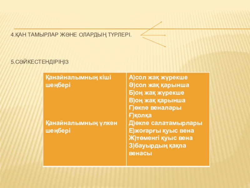 Слайд 124.Қан тамырлар және олардың түрлері. 5.Сәйкестендіріңіз
