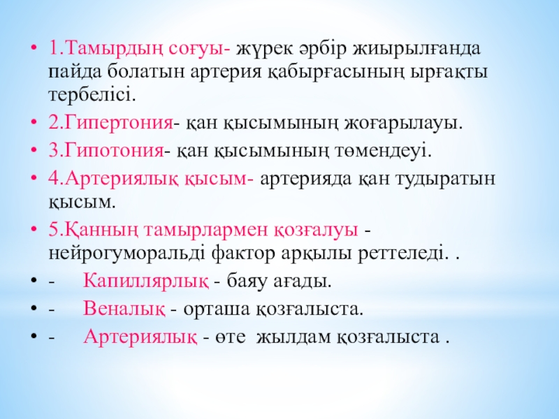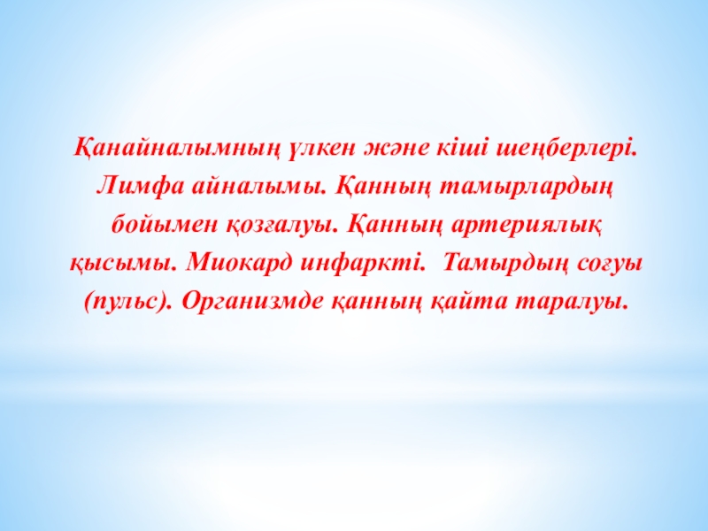 Қанның артериялық қысымы. Миокард инфаркті. Тамырдың соғуы (пульс). Организмде қанның қайта таралуы.