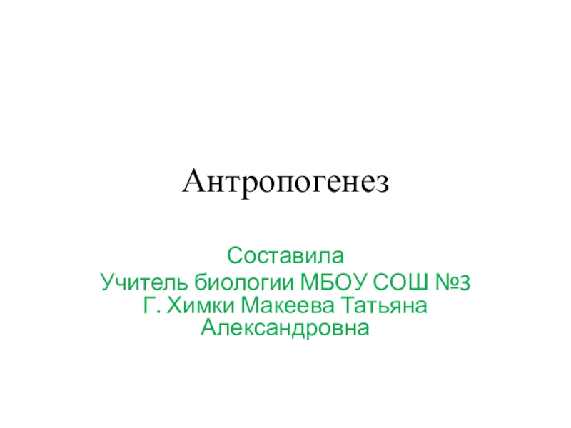 АнтропогенезСоставила Учитель биологии МБОУ СОШ №3 Г. Химки Макеева Татьяна Александровна