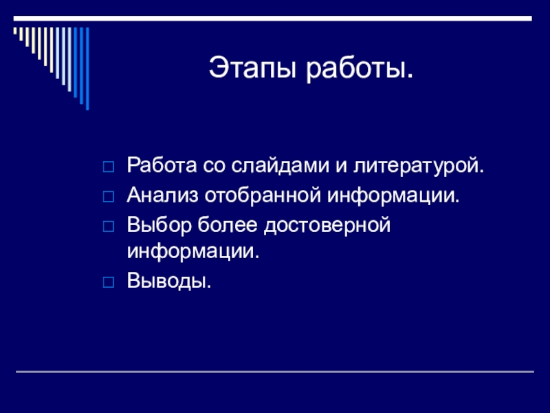 Слайд 6Этапы работы.