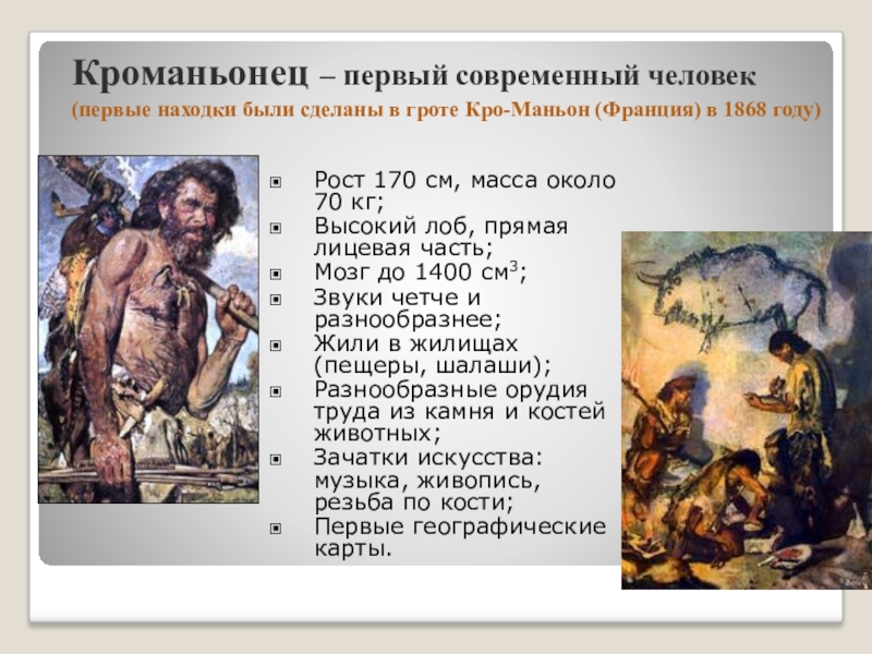Зачатки искусства: музыка, живопись, резьба по кости;