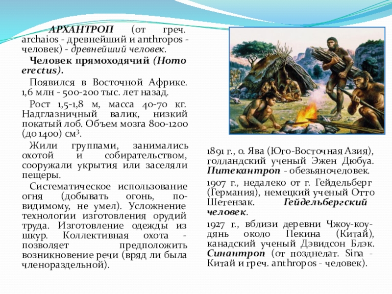 АРХАНТРОП (от греч. archaios - древнейший и anthropos - человек) - древнейший человек.