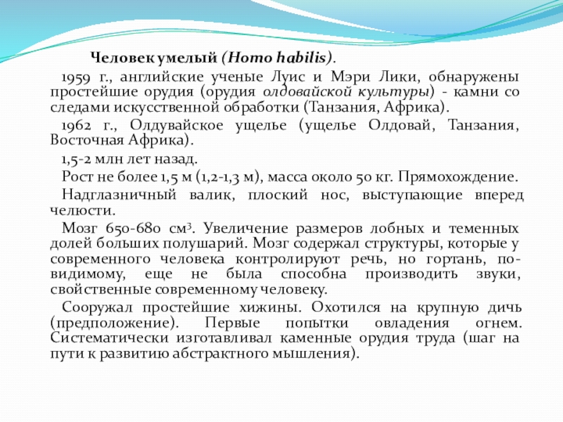 1962 г., Олдувайское ущелье (ущелье Олдовай, Танзания, Восточная Африка).