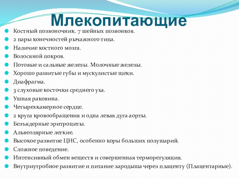 Высокое развитие ЦНС, особенно коры больших полушарий.