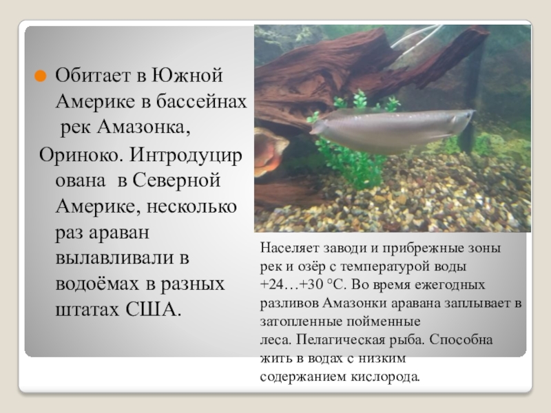 Ориноко. Интродуцирована в Северной Америке, несколько раз араван вылавливали в водоёмах в разных штатах США.