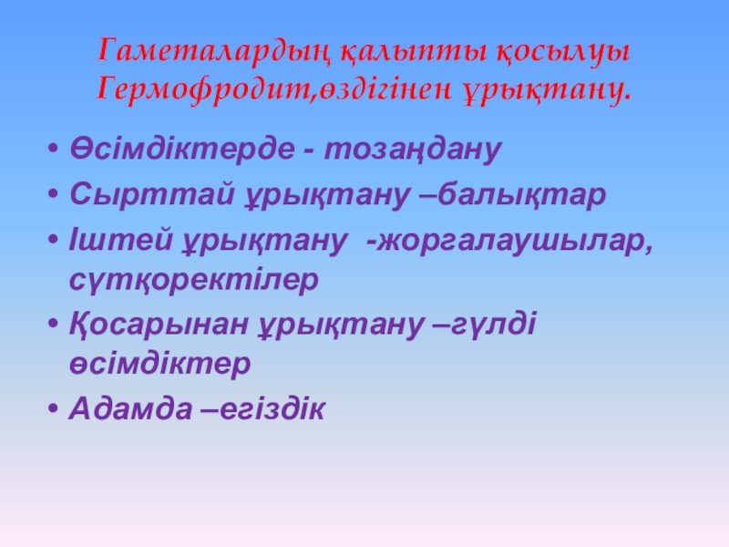 Ішек қуыстылар ,жалпақ құрттар , теңіз жұлдызы ,буылтық құрт , полала.