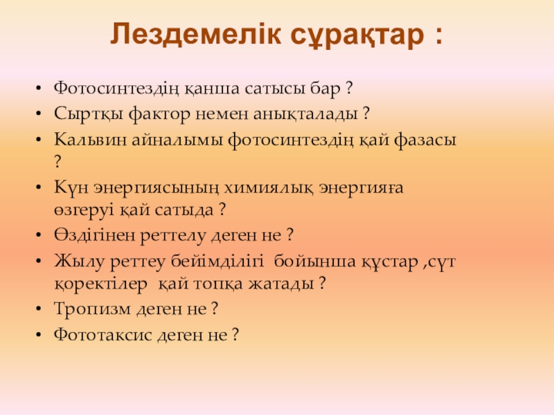 Фотосинтез ғаламшарымызды, тірі ағзаларды немен қамтамасыз етеді ?